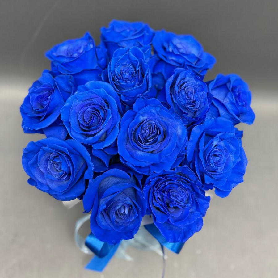 Монобукет из 15 синих роз в коробке «Ночь и море»