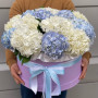 Композиция из 15 голубых и белых гортензий станет отличным подарком для тех, кто ценит красоту и изысканность. Он выполнен в стильной шляпной коробке, которая придает букету дополнительный шарм и элегантность. Композиция состоит из гортензий разных оттенков: от нежно-голубых до белых. Они гармонично сочетаются между собой, создавая гармоничную и неповторимую картину. Букет будет прекрасно смотреться как в помещении, так и на улице, подчеркивая вашу заботу и внимание к получателю.