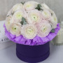 17 белых ранункулюсов в шляпной коробке в Колпино