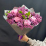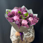 На фото букет розовых пионов с сиренью. В составе: сирень 7 шт, пион 5 шт, дизайнерская упаковка 2 шт, атласная лента 1 шт, . Все цветы свежие и ароматные, букет красиво оформлен и отлично подходит для подарка. Доступна доставка цветов или самовывоз.